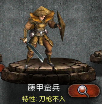 ②藤甲蛮兵:依靠特制的藤甲,减免25%受到的物理伤害