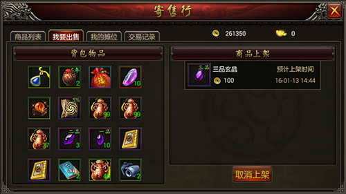 ◆寄售物品撤销上架,可提取撤销上架的物品。