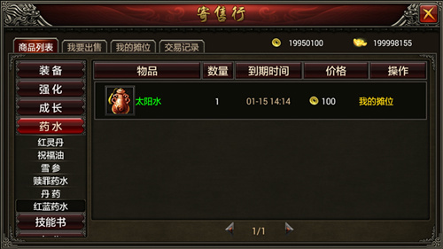 ◆寄售行中是无法购买自己所上架的商品的,在商品列表中自己所上架的商品没有购买按钮,会直接显示我的摊位。