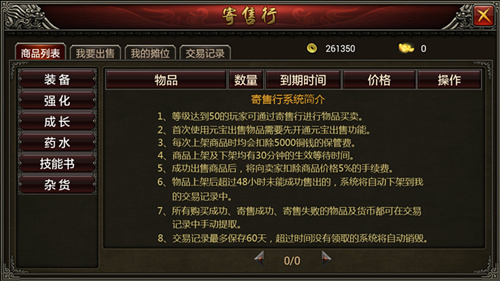 ◆玩家等级需要达到50级才能在寄售行买卖商品。