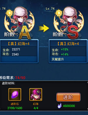 英雄本身只拥有生命和攻击两种属性,英雄的升级、进阶和突破也只会影响这两项基础属性的成长。其他属性,除了英雄天赋会提供一些之外,就要根据英雄自身的定位合理选择搭配装备了。英雄卡牌通过吞食商店和副本掉落的妖灵丸来升级,升级后会获得属性的大量提升。
