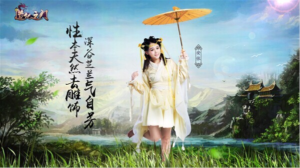 安依这个角色的形象正好与玩家路小路,号称氧气美女的形象相当吻合,娇小可人,手撑一把小纸伞,赤脚走过青草地。