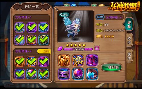 突破等级禁区 开启85级新世代 优化指数★★★★★ 在即将上线的“王者进阶”版本里,女神将为勇士们打破神之禁区,开启85级新世代。届时,所有英雄们的等级上限将从80级提升至85级,品阶、属性、技能等方面都将获得大幅度提升。同时,光明女神的等级上限也将从80级提升至85级,成为当前女神大陆等级最高的女神!
