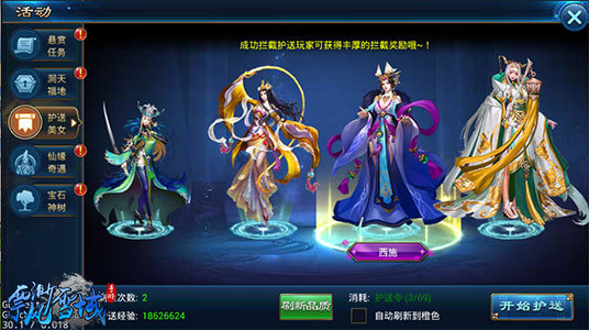 2、可通过护送令刷新品质来更换仙女,每次刷新,仙女品质必定会依次提升一个品质,当刷新到橙色仙女后,则无法再继续刷新;可设置自动刷新到橙色品质仙女;