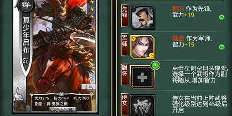 啪啪三国提升武将进阶成功率的几个方法,在游戏中,玩家也是经常需要去做一些方式来提升武将的战力,那么自然也就少不了一些玩家总结出来的经验和方法,所以说在这里给大家介绍一下这个全新的武将进阶玩法,能够大幅提升武将的战斗力。 首先武将的进阶层级有普通、真、鬼、神4个等级,每个等级需求的材料也是不一样的,而且武将在进阶为鬼、神时需要相应等级才能进行进阶,进阶鬼需要30级,神需要60级。所以在进阶的时候需要注意的是作为祭品的卡片无等级要求,但需要与主卡相同的层级与品质,所以玩家在获得相应的卡片之后不要急于丢弃或者分解,可以等待在后期兑换需要的武将,那么也就可以快速地获得卡片了,进阶就更加迅速了。 |