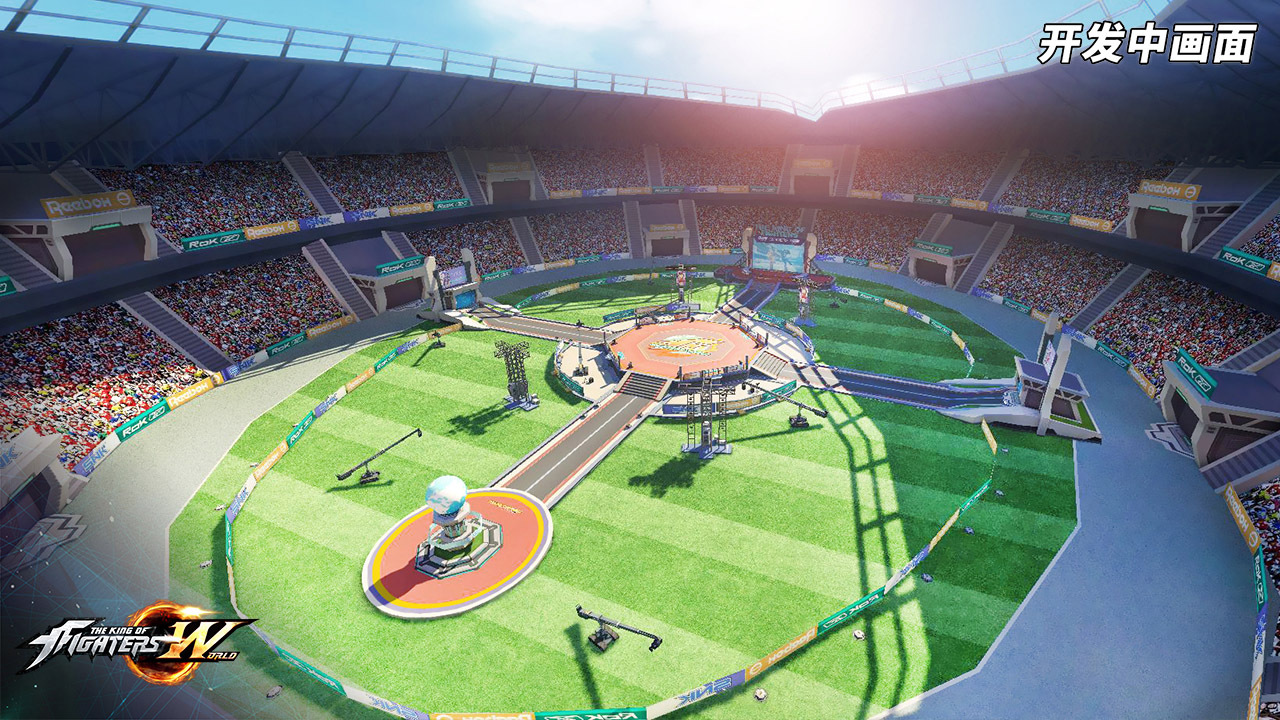此外,《拳皇世界》作为以“超大城市群”为概念定制的大型多人在线手游。将延续KOF系列的精髓,即经典3V3格斗。说到这里,就不得不提格斗的重要载体:擂台。游戏中首度曝光的俯瞰图中,格斗擂台如同一个大型体育场般宏伟震撼,不但视觉带感,画质堪比CG,听觉效果也和亲临现场一般无二。