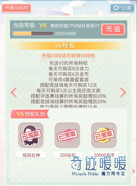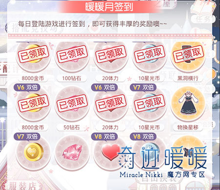 众所周知,钻石、金币、体力是奇迹暖暖中周游各国的基本必需品。那么如何充分利用游戏系统和相关活动来迅速赚取钻石、金币或体力呢?今天小编来给大家支个招! 体力: 玩家开始旅程最基本的就是体力了,角色为初始等级时,拥有60点体力值。随着等级的增加,体力上限会相应增加,角色每升2级,增加1点体力上限。参与单个关卡需要消耗4点体力值。公主级消耗6体力。 体力获得: 1.每五分钟会自动恢复1点体力值; 2.好友赠送体力值; 3.分享搭配到朋友圈等可获得体力; 4.签到、活动、大猫福利等获得体力; 5.完成每日任务可获得体力奖励; 6.钻石购买体力,25钻石购买30点体力,V0、V1特权每天可购买2次体力。 钻石: 钻石可以用来在服装店购买服装、在谜之屋·幻之阁购买水晶鞋(还将随机获赠3星-5星稀有服装),每日购买体力和金币。 钻石获得: 1.签到、活动、大猫福利等获得钻石奖励; 2.完成每日任务、达成成就可获得钻石奖励; 3.分享搭配到朋友圈可获得钻石奖励; 4.直接进行充值获得钻石。