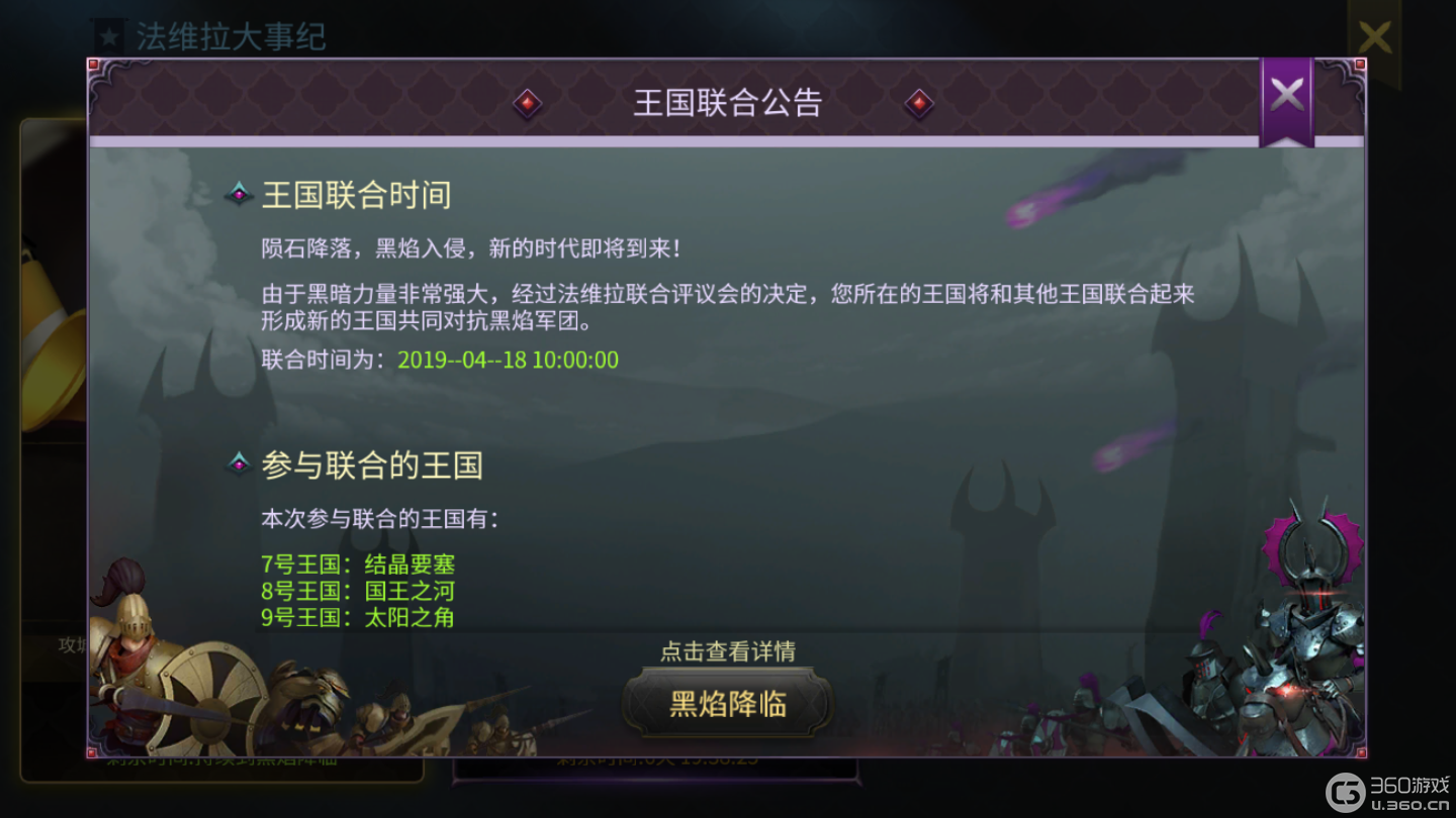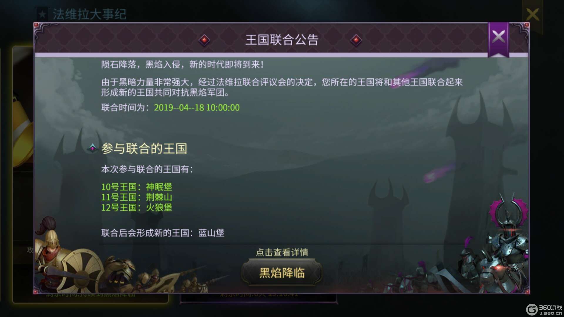 王国联合,新纪元进程继续推进!网易首款全球开放策略手游《权力与纷争》又将有六大王国投入到火热的联合作战新纪元!本周四更新之后,将有六个新的王国加入到联合倒计时的进程中,准备站在同一片战场上,共同迎接新时代的到来!随着全新资料片“黑焰降临”的上线,法维拉大陆将面临前所未有的危机,各联盟领主也将迎来更多挑战,他们将联合成为一个全新王国,共同抵御外敌入侵,史诗级战斗一触即发。觉醒吧,勇士热血即将沸腾!战斗吧,法维拉大陆等你捍卫! 王国联合,新纪元进程继续推进!网易首款全球开放策略手游《权力与纷争》又将有六大王国投入到火热的联合作战新纪元!本周四更新之后,将有六个新的王国加入到联合倒计时的进程中,准备站在同一片战场上,共同迎接新时代的到来!随着全新资料片“黑焰降临”的上线,法维拉大陆将面临前所未有的危机,各联盟领主也将迎来更多挑战,他们将联合成为一个全新王国,共同抵御外敌入侵,史诗级战斗一触即发。觉醒吧,勇士热血即将沸腾!战斗吧,法维拉大陆等你捍卫! 突破极限!前六个王国将联合共战 备战新时代,启程新篇章。随着新版本的来临,在来自黑焰地狱深处“愤怒之主”的驱使下,大批黑甲骑士对法维拉肆意侵略,黑焰降临,恐怖笼罩,城市纷纷沦陷,前所未有的危机正在法维拉大陆上快速蔓延。 ![]() 为了拥有更加强大的力量,与入侵法维拉大陆的黑暗势力抗衡,在危急时刻之中,具有超强实力的成熟领主们将率先集结起来,携手迎击来自黑焰地狱的挑战。本周有六个王国——奥波利斯、凡纳斯、裂谷城、北方要塞、雪狮城及湛蓝玫瑰率先建立“黑焰之塔” 踏上联合征途! ![]() 继此联合王国之热潮,又将有六个实力同样强劲的王国也将紧随“黑焰之塔”的步伐,两个全新王国即将诞生——结晶要塞、国王之河、太阳之角将组成新的王国“火焰洗礼”;神眠堡、荆棘山、火狼堡将组成新的王国“蓝山堡” !这些新建立的联合王国将率先进入“黑焰降临”时代,共同携手与黑暗强敌进行对抗。 ![]() ![]() 在周四更新后,步入新进程中的六个王国的领主们可以通过点击法维拉大事纪里的“黑焰降临”版块,查看新王国联合公告,以及正式的联合时间。随着时间一分一秒的流逝,他们即将迎来携手共战整装出发的历史性时刻,亲眼见证一个新时代的来临! 全球博弈!未来战事充满无限可能 “黑焰降临”的上线,预示新的危机已经来临,各联盟领主们需要在新王国成立之后奋起而战,形势严峻刻不容缓。然而,除了抵御黑焰入侵,联合王国的诞生也意味着一场激烈的军事博弈将同时展开。 原本就已互相剑拔弩张的各大王国联军,在新王国诞生之后他们将获得直面交锋的机会,届时王国内的各大强势联盟将展开更加激烈的战斗,更多新的作战方法与策略也将随着王国的联合而浮现出来,强强对决的战争风暴一触即发!在法维拉这片本就纷争不断的土地上,各位领主将进入跨进更加变化多端的动荡时期。 联合王国的诞生除了意味着更多变的局势、更重量级的强敌, 更重要的是,在新时代中领主们也同样迎来了更多新的机会,玩家们能寻找到更多志同道合的领主们缔结盟约,共同建立起更加强大的联盟!领主们需要一边抵御内忧外患,一边在各国纷争中寻找最佳的平衡点,不断扩大己方势力联盟,巩固原有的国土和资源,并抢夺更多的新资源——例如击杀黑焰骑士所能获得的丰厚奖励;同时,还要竭尽全力抵御来自其他联盟的侵略,更需要避免黑暗势力趁机大举入侵……未来的战斗将充满无限变数,希望在新的时代里,领主们能够在阴云笼罩的世界里砥砺前行,通过自己的努力抵御黑焰入侵,用热血与激情书写属于自己的全新时代! 此次联合之后还将有其他的王国陆续加入这场具备划时代意义的变革中来,请之后的王国继续耐心等待,养精蓄锐一待时机成熟之时。历史的辉煌,需要大家共同铸造,法维拉的未来,还有更多可能! 两座联合王国新诞生!网易首款全球开放策略手游《权力与纷争》再续王国联合热潮,新六大王国即将加入联合作战新纪元,两座全新王国“火焰洗礼”“蓝山堡”浴火诞生,与此同时“黑焰降临”版本开启,新的时代已然到来!关于游戏的更多玩法、更多精彩内容,请关注相关后续报道。 【关于《权力与纷争》】 《权力与纷争》是网易首款全球开放策略手游。游戏共有五大类型、四十余种不同建筑,玩家可在自己的领地中,精确规划资源实现最大化利用,发展农业、工业、军事,提升城市实力,抵御外敌入侵。游戏内有金钱帝国、工业巨擘与战争之王三大派系,各大派系天赋不同,给予玩家更多个性化发展空间,不同派系玩家也可通过合作共同提升实力。游戏中有丰富完善的贸易系统,玩家可凭借自己的商业能力低买高卖,上演逆袭。游戏中更有联盟竞赛与战争,及后期将要开启的跨服战和跨国战等多种战斗玩法,玩家可与真人斗智斗勇,享受策略战斗的快感。 |