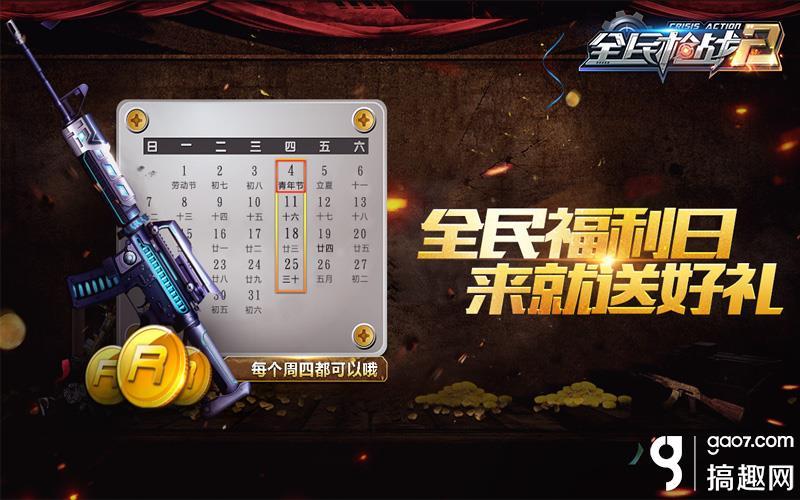 全民福利周周不断 今日是5月首次“全民福利日”,为了给枪友们开个好头,本周四将会给大家送出2016年感恩节专属枪械——林肯1863。这款武器具有酷炫的蓝色枪身、独特的流光效果,最重要的是子弹可以3连发。本周四登录游戏即可拥有!除此之外,本周幸运转盘还将更新出恐惧恶魔,对恐惧恶魔青睐已久的枪友们可通过登录领取的转盘抽奖券免费抽取两次噢!请一定要记得,每周四按时登录游戏,领取丰厚豪礼,花式壕礼只需登录,周周不断惊喜不断! 开“枪”嗨唱 百事皆爽 在炎热的夏天,还有什么能比,吹着空调玩《全民枪战2》,喝着百事哼小曲更爽的事情了呢?近日,《全民枪战2》携手百事可乐在华南地区开展的“百事最强音”校园比赛正在火热进行中!开“枪”嗨唱,百事皆爽,华南地区的枪友们感兴趣的快来一起围观吧,更有机会获得全民枪战限量罐噢!
