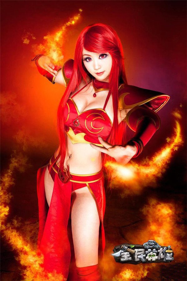 放眼另一面,饰演“冰女”的Coser转眼间变换成另一翻模样。火红的长发、火红的服饰,明黄与火红相呼应的背景色调,将一位性感火辣的女郎形象淋漓呈现,让玩家们大开眼界。炫丽的火系法术搭配妖娆的身姿,也让众玩家进一步对“火女”进行了认识。 “火女”以打击盗贼和屠龙著称,虽然她是为了背后的金钱。她拥有让人绝望的强大力量,可以非常娴熟的操控火焰,在她手下释放的魔法极具破坏力。而如今,她进入到了近卫军团,为了摧毁冰封王座,打击天龙灾的毁灭,当然,近卫军团承诺的金币才是她的真正目的。