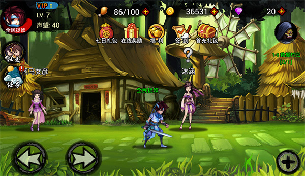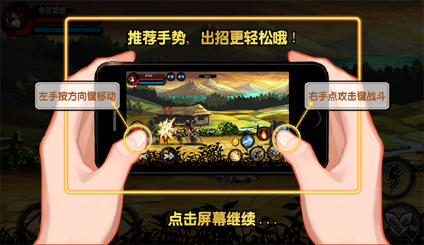 作为一款横版格斗手游,《全民捉妖》选用的是左右方向按键的移动操作方式。点击界面左下角的方向键,人物便可在地图上左右移动。 全民捉妖的战斗操作主要集中在右下角,同样也是按钮点击的方式。使用四个技能结合闪避、攻击实现不间断的连击,体验爽快的打击感。 以上操作在刚进游戏的时候都会有详细的引导,相信各位玩家都能很快地熟悉。