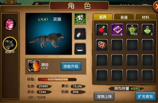 当然不能忘记与我们携手并进的宠物也是需要装备的,装备的部位比较少,只有3件。分别是:爪、护符、项圈。 品级也与玩家的装备系统一致。