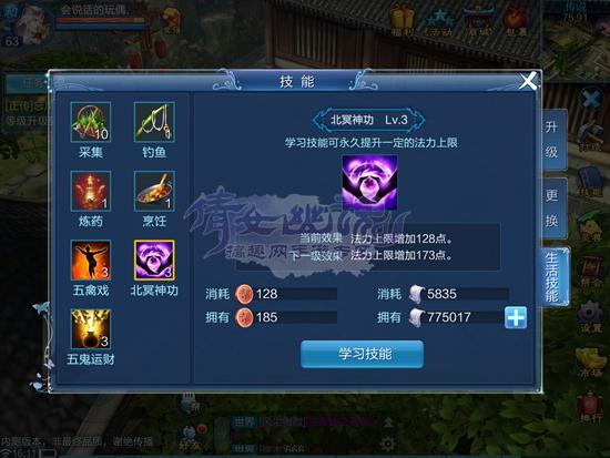 北冥神功是提升法力上限,对于依靠法力生存的角色,例如:方士、魅者等尤为重要,所以玩家可以根据职业需要学习技能。