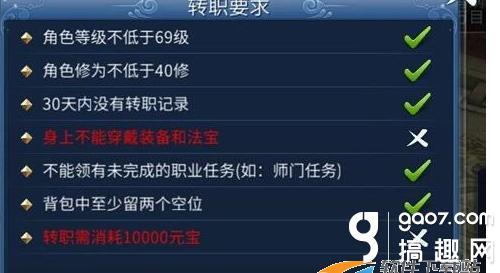 而第二种,对自己现职业不满意的朋友,如果你已经有了自己心仪的角色那直接参照上面,想转果断转。如果,你仅仅是对现职业不满意,但是还没有想好转什么的话。我觉得我们该好好说说了。你对自己职业不满意,但是还不知道转什么的话,这更大的可能是你觉得其他职业也不是那么好,更不知道自己这个职业是不是真的不好。所以,你想体验一下新的职业。 转职后的变化 这种体验我觉得更可以从经济角度来谈,转什么职业比较合适。不过,这之前你还是要想明白一个问题。你想转输出还是辅助。想好这个问题后,我们就可以开始分析了怎么转职了。让我们先看一下转职后的变化。 转职后的变化:转职后修炼为0,自动领悟当前等级可以自动领悟的技能,需要技能书领悟的技能全部为0级,经验、帮贡和银票根据修为返还(修炼全部返还,修为大于69全部返还)。 绝技返还为道具"遗忘的绝技秘籍",可以按比例兑换为九变天书,若转回原职业,使用遗忘的绝技可以重新领悟对应的绝技。 转职后30天内,装备孔可以无损转移,但必须是同部位同等级段且绑定(如原来109的鬼布衣孔转到新的109鬼皮甲上)。 这是,上周的转职解读。从中我们可以看出,转职最大的损失就是绝技和1万元宝。再有就是转装备孔的元宝。除此之外就再无其他费用了,所以我们主要考虑的就是一件事情,转职后的装备利用程度!
