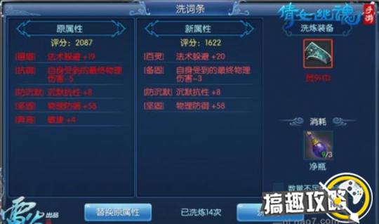 词条系统 倩女幽魂手游完美还原端游的装备词条系统,一件装备可以有各样的词条属性,让装备的培养更加充满惊喜、充满个性。词条需要使用净瓶洗炼,虽然净瓶白菜价,不过玩家都说洗起来特别带劲,根本停不下来! 为了洗到厉害的词条,肯定需要投入相当的净瓶。七绝八绝,无钻固然最好,但追求效率和性价比的玩家不用对此过分苛求。宗法(增加最大法术攻击)、攻击致命提升、实用技能等级提升等实用性词条更加容易得到,实战效果也相当不错。装备词条就应该专注某一方面的属性,不用面面俱到。想象一下一个全身破盾攻击装的射手吧,是不是很害怕这样的对手呢?