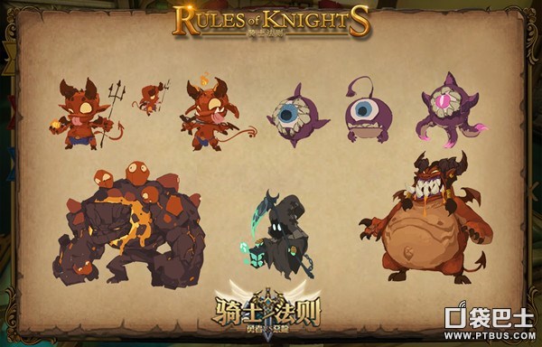 【可爱外衣之下的狂野内心】 多国大触画师精心设计,为《骑士法则》打造多款各具特色的怪物军团。他们有的邪魅狂狷,有的呆萌可爱。获得相应的怪物之后,主角就可以派遣这些怪物驻守在城堡之中保卫家园。