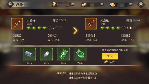 装备在强化满级之后可进行进化,再次提升装备的属性,那么如何才能进化呢?