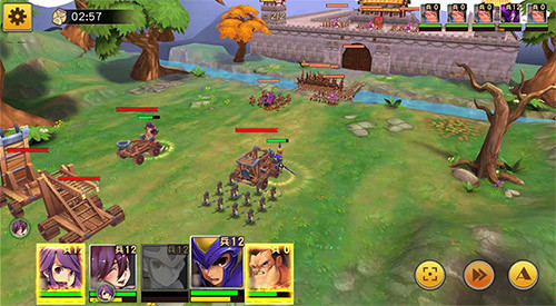 战斗难度在小试牛刀的新手教学后迅速变得富有挑战性,甩手旁观让将士们一股脑地横冲直撞很快不再适用。作为后排支援火力的方阵一旦遭到敌方前排近战的贴脸将不堪一击,而失去了后排支援火力的前排士兵则毫无疑问会成为敌方的沙包,玩家审时度势实时把控战场局势的能力成为战斗能否胜利的重要因素。所有将领的技能除了时机把控还可通过拖动的方式选择施放空间位置,把握好时机和方位比让士兵多训练的效果直观得多。 而攻城作战当中,更多的重型武器将加入战场,攻城云梯、攻城锤、投石车、重型弩箭等重火力为战斗增添了更多可能性。守方军团拥有城墙和护城河作为天然屏障,近战方阵离开攻城武器的帮助几乎一筹莫展。运用好辅助型将领的技能,使后排支援火力获得更为稳定的支援环境,支援火力才能更好地为重型武器的发挥提供掩护,进而配合近战方阵夺取城墙控制权。