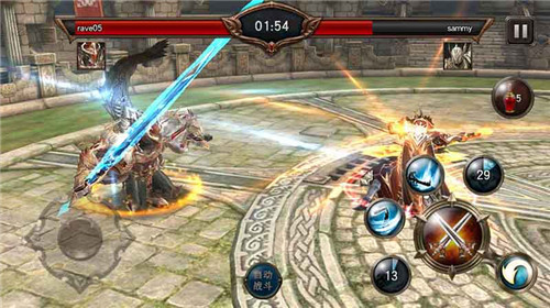 《Raven:掠夺者》武器示例 【金属风暴 点燃战斗之魂】 《Raven:掠夺者》的重金属之美集中体现于游戏格斗中武器与甲胄的钢铁碰撞之中,金属碰撞的火花是点燃才是点燃激情关键。在《Raven:掠夺者》中,刻画精细的钢铁重甲与兵刃在格斗过程中的碰撞反馈更为出色:游戏角色动作大开大阖,每一次出招都力量感十足——在使用重兵器时,在形成连招之后,玩家甚至可以感受到在势能作用下,武器微微不受控制的拉扯感。为了让玩家更好的体验钢铁的碰撞感,游戏中的武器碰撞伴随有人物移动节奏的变化、画面的轻微晃动以及逼真的音效,再配合贯穿始终的紧张、节奏感十足的背景音乐,玩家心中的动作之魂被唤醒和点燃。