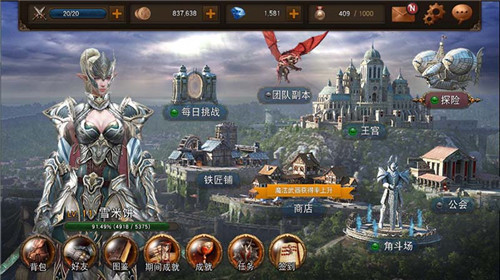 【精细打造 钢铁细节之美】 玩家初入游戏,映入眼帘的便是厚重沉稳的UI界面:深棕色的界面极具材质感,配以简洁的金属材质团丝花纹边框,历史气息铺面而来;在战斗界面上,顶部的状态栏与主界面UI一致,技能按钮则采用了宝石玻璃材质,宝石的圆润与钢铁的光泽相得益彰。类似这样的重金属风格细节在游戏中还有许多。