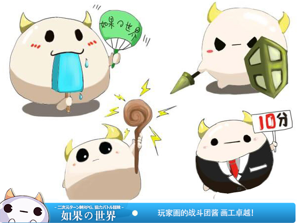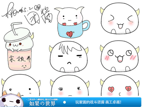 Hi,米娜桑,这里是喵酱!爱生活爱爆料的小吃货一枚!在上一期喵酱爆料了自己的各种形象,但曝光不能只有我一个人哟,所以今天,喵酱就决定来爆料一下喵酱头上顶着的那只小萌宠——团酱!没错,就是那只喜欢吃巧克力的棉花糖哦! ![]() 喵酱来爆料啦! 作为喵酱的好朋友,团酱可是深受小伙伴们的喜爱,很多小伙伴们亲自操刀,画出了各种萌萌哒团酱呦,下面这组萌新团酱,各具特色!喵酱好喜欢第一只吃雪糕的团酱啊,没办法,谁让喵酱也是一只小吃货呢>_<,看见同党真是莫名的亲切! ![]() 四只团酱都好可爱啊>_< 接下来喵酱还要放一组少女心爆棚的的小团酱,也是游友画的团酱图哟!这一组团酱的颜色十分粉嫩,整体形象也是萌萌哒,那只求领养的小团酱,你还能再可爱一点了咩? (づ ̄ 3 ̄)づ看着羞红的笑脸,喵酱好想调戏一下啊,快到喵酱碗里来,喵酱要领养你! ![]() 少女心团酱神马的最萌啦! 再来给小伙伴们展示一下游友画的三只蠢萌蠢萌的小团酱吧!中间那只见钱眼开的的小团酱,你是看到了多少钱才笑成酱紫呢,竟然露出了十颗牙,不过你的牙齿好整齐哟!左边饿了的小团酱,你的小眼睛在看神马呢,专注到只剩食物了咩?右边的紫耳朵小团酱,你那无辜的大眼睛是肿么回事呢?喵酱抱抱,不要哭哦! ![]() 三只团酱各具特色! 看过游友们画的三幅萌萌哒的团酱之后,喵酱发现真是一百个人心中有一百只团酱。当然,“如果团队”也为小伙伴们献上了一组团酱表情包,各种团酱尽在其中,欢迎小伙伴们自行取用,总有一款适合你,详情请见下面的原画设定哦! ![]() 这么多团酱你喜欢哪个呢? 最近,“如果团队”开始制作团酱周边了哦,这些都将是小伙伴们的福利呢!当然,制作的路途是坎坷的,下面这张照片中的团酱已经变成棉花了,说到这里,喵酱还是有点心疼的,虽然是不合格品,但人家也是团酱啊>_< ![]() 一大波团酱周边袭来! 最后再来放两张“如果团队”精心制作的带着日历的团酱壁纸吧!暖暖的黄色作为背景颜色真心很舒服呢,再搭配团酱散发着爱心的可爱小表情,简直成为了暖心小能手,喵酱看着它心情瞬间变好!这么一张既实用又可爱的壁纸,小伙伴们快快下载用起来吧! ![]() 团酱电脑壁纸参上! ![]() 团酱手机壁纸参上! 喵酱大爆料之团酱表情包到这里就结束啦,喜欢团酱的小伙伴们可以去《如果的世界》里获得团酱作宠物哟,当然还有更多的团酱小表情有待创新,米娜桑快快打开你们的脑洞吧!