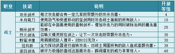 烈火剑法:烈火剑法属战士的单体爆发技能,CD长,单次输出高。有了火精灵的奋力相助,一向勇往直前的战士更加不畏生死,看剑上燃起的熊熊烈火,看战士眼中的不灭火光,所有敌人退避三舍。