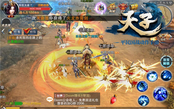 关于《天子》手游: 《天子》手游是一款根植于端游经典玩法的平民国战动作手游,游戏采用先进的U3D引擎技术,以端游级4K 超清画面、3D场景动态实时反射、真实物理碰撞及爽快的打击感等为特色,实现手机上的百人同屏炫丽国战。《 天子》手游首创角色离线玩法,并加入全视野开放式大地图,让玩家可以永不离线,尽情PK, 自由战斗,开创 动作国战手游的新时代。 |