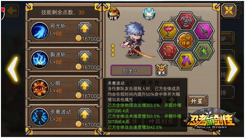 【战斗一键跳过 PK超畅快】 PK中无法控制英雄大招,短暂的战斗过程却感觉无比漫长……这样的时代就此终结!《忍者萌剑传》在全新版本中推出“战斗跳过”功能,排位赛、匹配赛、金矿、家族战……所有的PVP玩法都将可以跳过。更畅快的战斗,更快速地阵容检验,一键跳过让PK前所未有的畅快,让玩家可以最快地拥有最佳组合阵容!