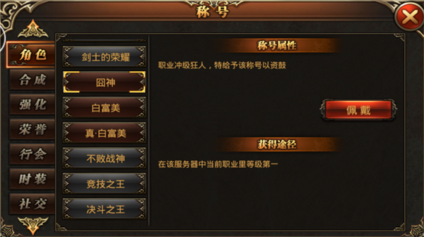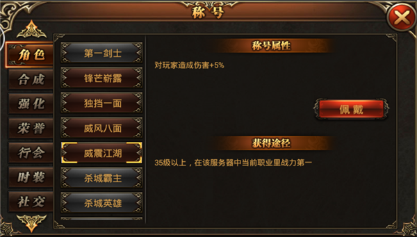 【战力称号】 没错,战斗力也是有称号的!其实,第一职业的称号最为稀有,如果玩家在该职业战力达到第一,即可获得如:第一剑士,对所有玩家造成伤害+5%!人挡杀人,佛挡杀佛!