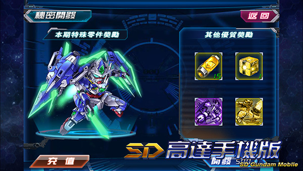 【动态登陆 展开酷爽宇宙之旅】 玩手游从不留意剧情?平淡的登陆界面让你失去了激情?为让玩家能够第一时间感受到原著风味,《SD高达手机版》首次将登陆界面动态化。无论你是初次接触高达,还是高达的忠实粉丝,那绚丽的动态登陆界面,定能第一时间让你进入那经典的动漫场景中。