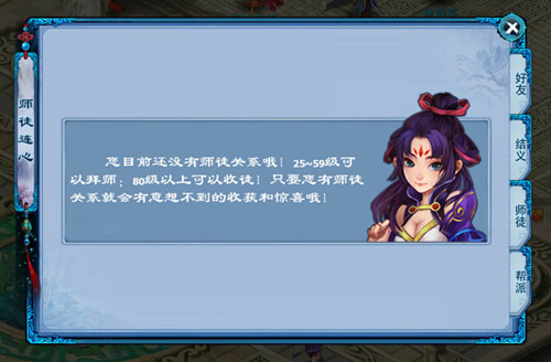 师徒情深 构建情义江湖 杨过因为遇上了师父小龙女,从而有了后续的传说,那么刚刚踏上《神雕侠侣》江湖的少侠们,你们遇到的师父又会带给你们怎样的人生?《神雕侠侣》之“天下无双”推出温馨师徒系统,25级之后的少侠们可以选择80级以上的玩家拜他为师,“师徒连心”系统将师父与徒弟紧密相连,师父将一路呵护着可爱的徒弟,直至徒弟成为独当一面的大侠。而付出了辛劳的师父也能获得来自徒弟的惊喜礼物——除去徒弟完成相应任务系统赠送给师父的礼包之外,徒弟在成长过程中,还会给予师父许多奖励加成。师徒齐心,这片情义江湖,我们始终不离不弃。
