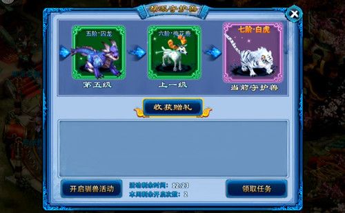 帮派神兽 守护侠士安全 《神雕侠侣》手游世界中,帮派对于诸位大侠而言是宛如家一般的存在。这里有同生共死的好兄弟,这里有让自己享受运镖劫镖乐趣的镖头塨叔、这里有帮助自己提升战力的修炼教头……如今伴随着《神雕侠侣》新资料片“天下无双”的开启,帮派中又要多了一名新成员——守护兽。每个帮派都将拥有一个自己的守护兽,初始等级为1级,等级可以通过完成帮派驯兽任务获得训练度来提高,并从而获得不同的造型。帮主或副帮主可以通过守护兽界面按钮开启帮派驯兽活动,开启后所有玩家会收到拉人提示,一小时内点击界面按钮“领取任务”即可获得一个随机1-3星的试炼任务,该任务只能3-5人组队完成,星级越高,奖励越好。守护兽将始终陪伴着诸位侠士,见证侠士们在帮派的喜怒哀乐奋斗成长。