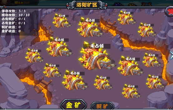 新手第一步,先来熟悉一下《三国归来》的游戏场景吧~ l 主城场景 ![]() 建立角色完成后,首先进入的是主城界面。在主城界面,玩家可以招兵买马,广积粮草,进行出征前的准备。可以说主城就是玩家的大本营,建设好主城,才可以拥有更加强大的实力。 l 副本场景 ![]() 在主城界面右下角的主城按钮边上点击“征战”,则可以进行出征了,游戏中有几十个副本。只有全部征战完一个势力,才可以向下一个势力挺进。而一个副本中,玩家会遭遇到十几个NPC的队伍,当然所有的敌军部队并不是全部都显示在界面上的,只有打败完前哨部队,才能攻击下个目标。 l 资源场景 ![]() 从主城界面或者地区界面可以直接进入资源界面。资源包括金矿和铜矿,当然相同地区的资源也会有产量上的差异,所以更积极更强大的玩家可以占有更好的资源,获得更多收入。 |