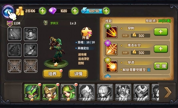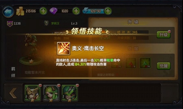 图四 再就是他的二段技和被动技能。二段技能是再发出一次水平的四连击攻击,而被动技能是,当罗宾汉打出暴击的时候,可以再触发一次二段技能。该效果一个回合只会触发一次。由于罗宾汉连击次数多,在装备暴击率提升之后,基本每回合都能触发这个被动效果的。 被动技能是罗宾汉的神技,建议在加满普攻之后优先加这个技能。 所以,紫色之后的罗宾汉,就变成了一个恐怖的输出机器。 他火力集中,会对敌方前排造成定点致命伤害。而他在队伍中的站位比较靠后,基本吃不到什么伤害,所以建议在强化装备的时候,优先强化武器与头盔,防御装则可以等到资源富余的时候再投入。 放心强化罗宾汉吧,这个绿帽子蜀黍不会让你失望的。 |