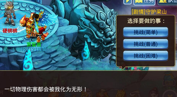 1.每层共有4个怪物NPC,每种类型各一个,而每个NPC又有三种难度可供选择。每个怪物NPC,可以同时由多个玩家挑战。根据挑战的难度,挑战成功可以获得不同的积分,简单级:1积分;普通级:2积分,困难级:5积分。 2.所有帮派成员的积分累计达到100,即可通关一层。特别要注意的是,无论挑战何种难度,如果挑战失败,则不会获得积分,所以要量力而行,选择适合自己的难度和NPC进行挑战。 3.通关后在每一层副本,与NPC闯关使者对话,会有“通关结算”和“离开副本”两个选项。 4.副本未关闭时,随时可以进入闯关副本(传送至当前未通关那一层),也可以随时离开副本。 5.活动结束后,闯关使者NPC还会存在30分钟,以便还没有领取奖励的玩家补领奖励。 6.特别注意的是,怪物的挑战难度均会随着副本层数递增而递增 玩法介绍: NPC1:硬梆梆 特点:血厚,免疫一切物理攻击,但法术防御低;会加状态,提升攻击。 玩法:使用法术伤害高的阵容,主角是物理输出为主的话,则选择增益或者控制技能,提高宠物和星将的输出;阵法推荐使用暴力输出的方圆阵、鱼鳞阵等,星将则选择潘金莲、神火将、吴用等法术攻击的,也可以选择附带中毒、扣血等额外伤害技能的星将,比如西门庆。