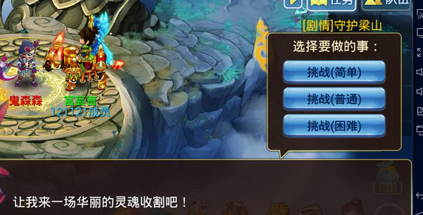 NPC2:鬼森森 特点:鬼灵会分身术,免疫物理伤害,鬼灵速度快,伤害高,还会连击4次,另外技能带有降低命中和灵巧,还会催眠咒,还能补血,可谓攻防兼备。 玩法:此NPC的队伍比较强大,需要强大的输出阵容,先解决掉鬼面,输出不够的队伍,则要考虑带个血厚的肉盾,还要配备法术伤害的星将对付鬼灵,另外务必配备一个奶妈,做好持久战的准备。阵法推荐雁行阵(增加速度,先出手)、云龙阵(怪主要物理输出)。