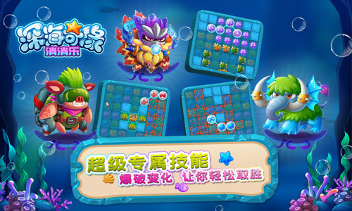 独特伙伴系统 超级专属技能 《深海奇缘消消乐》独特的伙伴系统以及超级专属技能也是游戏中十分值得关注的亮点。游戏设计有5种颜色的萌宠,每种颜色都有3个不同的小伙伴。你可以自由组建自己的最强小队出去挑战。萌萌的小伙伴们可以通过升级、进阶等等方法提升自己的能力。每个小伙伴都有四个发展阶段,每次进阶都能大幅提高战斗力。而且,小伙伴们都有自己的特有技能,“转化”“爆破”“特殊消除”,让你在战斗中更加灵活!