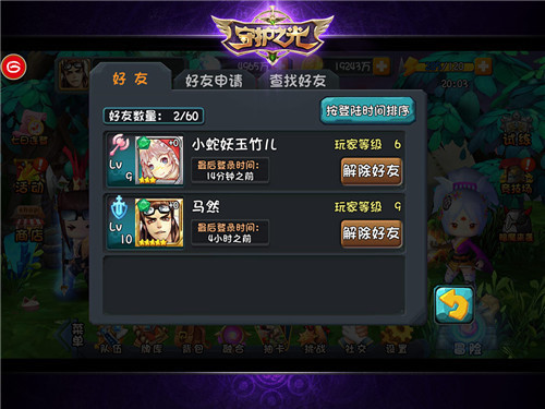 玩家可以通过下方菜单中的“社交”按钮进入社交界面。在社交界面中可以看到好友的等级以及队长卡片的详细属性等。此外,在《光之守护》中且可以邀请小伙伴的队长卡在战斗中帮助自己,使副本通关更加简单! 邀请双方皆可获得友情点,是快速攒足友情十连抽的最佳方法哟!