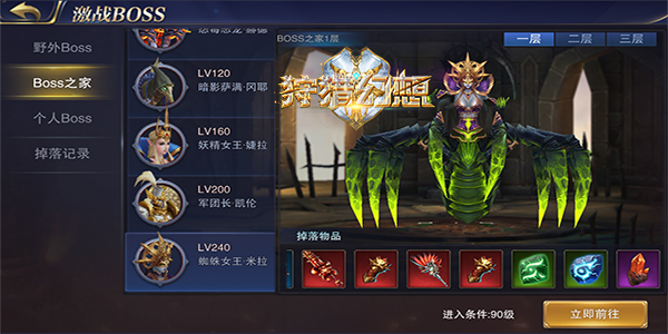 战斗机制 玩家升到90级后可以在野外boss个人boss挑战蜘蛛精。在于蜘蛛精战斗时,除了要避开她锋利的爪子,还要注意不被她毒囊里面持续发射的毒箭伤到。 ![]() 《狩猎幻想》 是由极光互动研发的一款ARPG魔幻类3D手游,在游戏中,玩家不仅可以在龙与神魔的魔法世界中尽兴畅游,还能亲身挑战各种超级boss,更有组队竞技,每日比赛等玩法等玩家来挑战! |