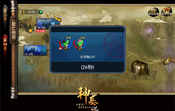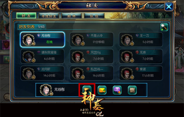 还在享受独战群雄的乐趣?还在盲目的挂机刷经验升级?你OUT啦!在《神墓OL》里和好友一起组队刷怪不仅事半功倍,更可以获得额外的好友组队加成,队伍人物上限为4人,也就是说,玩家们组好4人队伍并在同一个副本中,可获得最高的经验值加成。玩家可以在社交面板中找到在线好友,选择想要组队的好友后,点击下方的旗帜标志,就可以向对方发出组队邀请,对方接受后就可以一起进入副本战斗,前提是得保证该副本大家都已开启或打通,没有开启该副本的玩家是无法进入副本进行战斗的。 图2:选择在线好友组队打副本