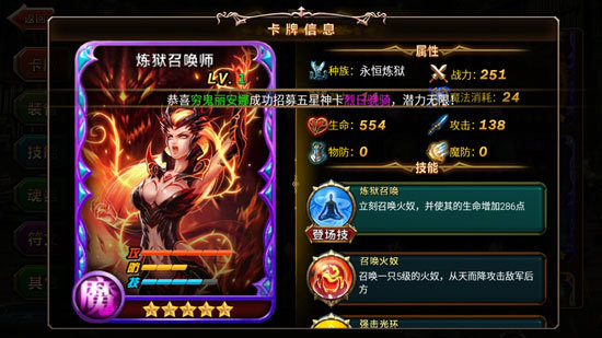 备受业界瞩目与玩家期待的大型即时策略RPG手游《神魔之战》终于正式进入了不删档内测阶段。随着测试的开启,许多玩家已经一头扎入了收集游戏中超强卡牌的道路之中,那么在这里,小编就为大家指引一个方向,先从最强的法师英雄开始为大家推荐值得收集的卡牌。其实在《神魔之战》中,所有的五星强力法师系英雄都是火焰的使用者,在烈焰之下,他们将会带给敌人的是成吨的伤害,黑龙、凤凰、炼狱召唤师、雷斯曼,则是操控火焰的佼佼者。炼狱巨兽 黑龙在 《神魔之战》中,黑龙依然是一个强大到可怕的角色,不仅拥有超强的攻击力,在防御力上也足以与肉盾英雄相媲美。在战斗中,黑龙能够使敌方全体失去所有的治 疗恢复效果,同时造成成倍的伤害。虽说黑龙还有一个治疗效果减半的小缺陷,但在强大的战力之下,这又算什么呢?想要获得黑龙,玩家需要在竞技场商店中收集 碎片进行兑换,还是有一定难度的哦。 涅槃不死鸟 凤凰相 比凶暴的黑龙,《神魔之战》中的凤凰虽然没有那么强大的防御能力,但攻击力更胜一筹。凤凰的技能能够增强自己的攻击能力,并且在死亡后有较高几率回到手牌 可以再次进行召唤。总之,凤凰的攻击力就是越打越强,配上返场技能成为强力输出。至于获得,则需要玩家们从试练塔商店中兑换,同样有些难度。 火焰召唤者 炼狱召唤师炼 狱召唤师在所有法系英雄之中,对于火焰的控制是炉火纯青的。《神魔之战》中的炼狱召唤师虽然血薄,但攻击能力更是强的一塌糊涂。一登场便能够召唤一只火奴 从天而降攻击敌方后方,配上全体增加攻击的强击光环,炼狱召唤师能够成为队伍输出的核心。想要获得她,玩家需要从神秘宝库中收集碎片哦! 火法师 雷丝曼雷 丝曼的强大是非常明显的,毕竟是《神魔之战》中有名字的女性英雄。雷丝曼的火球术与烈焰轰击都是强力的魔法伤害技能,还能够使敌人进入燃烧状态,更能够抑 制对方的转生与复活技能,在打拉锯战时有奇效。获得雷丝曼则是更一个拼人品的事情了,玩家能够在秘境中随机遇到她,到时候要抓紧机会哦。 当然以上所有的英雄都还是能够通过在召唤神殿中抽卡来获得,当然能否找到你心仪的英雄,就看运气了哟! |