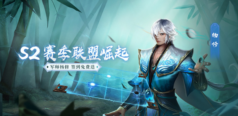 图三 烽烟天下 在【烽烟天下】的地图之上,玩家可派遣3套不同的队伍,占领矿点,获取持续的挂机收益。每天19:00至21:00开启的激战时刻,更是惊心动魄!在激战时刻中,挂机产出收益将提升300%!挑战限制的取消使得战火愈烈,若在激战时刻中被其他玩家击败,会直接回到安全区,获得极低的占矿奖励。 要获得最高的联盟荣耀,需要凭借盟主深思熟虑后的战术调配,以及全盟成员的努力奋战!或打造圣物,或骚扰对手,或攻城占矿,合理的团队配置将是获胜的关键。威武之师占城为王,全团共享胜利硕果! 【赛季新军师 签到免费领】 杨修,字德祖,学识渊博,聪慧异常,辅佐曹操多年,负责内外之事均无差错。身死因才误,非关欲退兵。