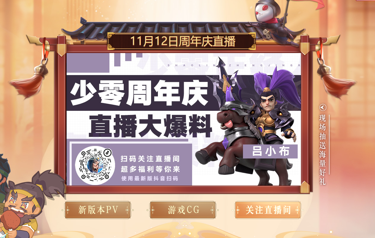 11月12日(今天)晚上8点我们将在抖音直播间与大家齐聚一堂,一同揭开周年庆版本的神秘面纱。从万众期待的神将返场,到别具一格的海战玩法,进一步拓展少年们的九州之旅。凡观看此次直播的少年都可以参与多轮抽奖活动,更有神秘6星神将和海量元宝等重量级福利。 【开启首个海战玩法 趣味不断惊喜不断】