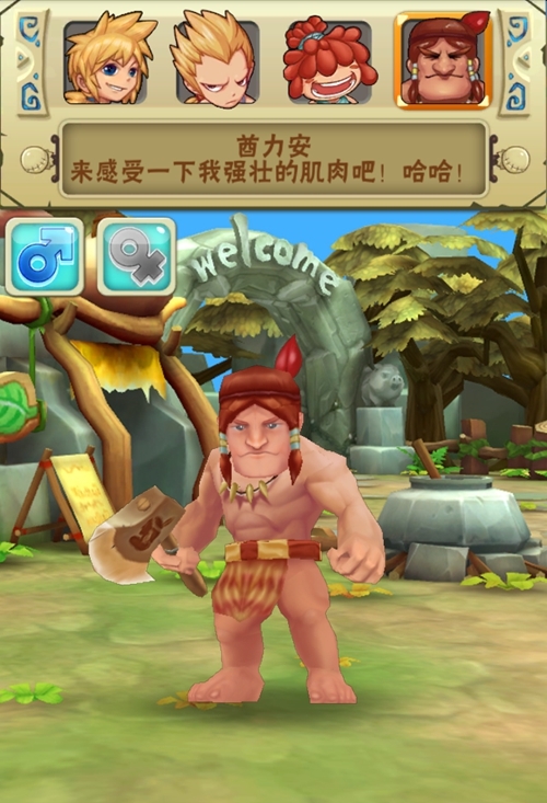 尊敬的勇士,欢迎来到石器时代!在这片原始风貌大陆上有数不尽的奇遇、萌宠在等待您的发现,在这里没有紧迫的任务,您可以按自己的心意,一面领略原始风貌一面结交好友,愉快地玩耍在石器时代中。 在正式开启石器冒险之旅前,首先要创建您心仪的角色。在创建角色界面,共有8种形象可供选择,其中男性形象有: “罗伦斯”,石器渔村里最招姑娘喜欢的帅气小伙,武器是一把锋利的长枪;