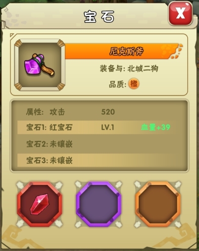 每件装备都有3个可镶嵌宝石的槽位,不同宝石具有不同属性,玩家可将宝石镶嵌至装备,从而提升装备属性。宝石等级越高,提升的装备属性越高。
