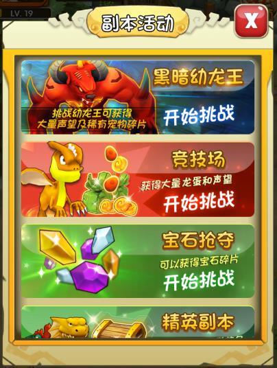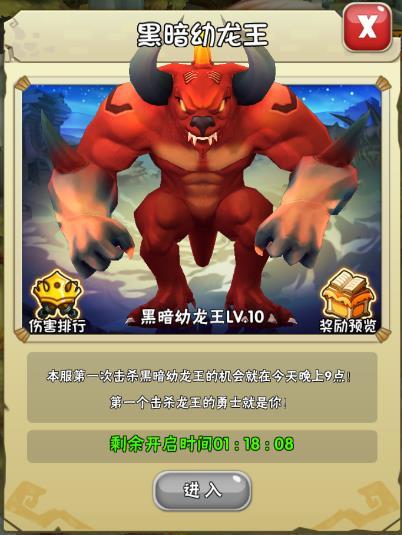 挑战黑暗幼龙王是每日定时世界boss活动,每晚21:00整大陆第一邪恶boss黑暗幼龙王便会现身,在21:30的时候他的保护光罩就会消失,此时正是各位勇士干掉他的好机会。而且,参加挑战黑暗幼龙王活动可以获得大量金钱石币、声望和稀有宠物碎片。当活动开启时,玩家可通过主界面中“副本”键进入“副本活动”列表,从列表中就可以选择进入黑暗幼龙王挑战空间参加活动了。如果未在挑战开启时间,也可查看到下一次开启的倒计时。
