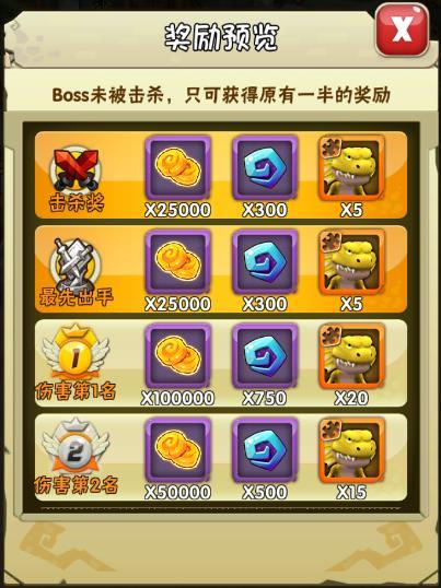 由于各位勇士受到神灵的护佑,所以在每次被黑暗幼龙王打“团灭”后,经过一小段复活时间,我们的勇士就可以继续挑战boss了。在规定时间内,全体参与活动的勇士将黑暗幼龙王血量清零,即算挑战成功。如规定时间内,未能击杀boss,则参与挑战的全体勇士活动奖励减半。挑战活动奖项分为击杀奖、最先出手奖、排名奖,玩家可通过挑战活动界面左上方的活动信息查询功能,查看自身在活动中的挑战伤害与排名。