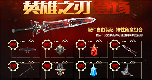 英雄之刃登场,变幻外观斧剑随心 作为一款近战武器,英雄之刃-基础刃的外观依然是以刀的造型为主。镂空的刀身、不规则锯齿的刀背,黑色与金属色夹杂的配色,给人难以忘记的印象。精心设计的棱角沟壑,完全满足玩家们对于英雄级武器的外观期望,而更为重要的是,英雄之刃可以使用配件组合成新的武器外观,与此同时也会获得额外的属性。如此强大的一把英雄级武器,在玩家购买赛季贵族之后,只需到达赛季80级就可获得!