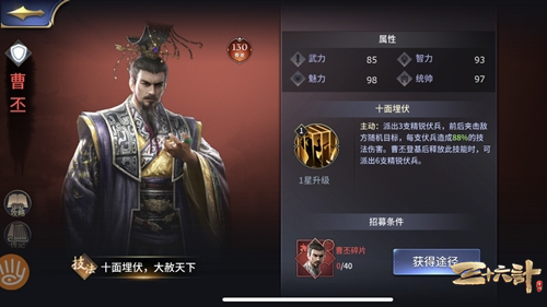 一策奇谋吞天下!桃红李白,雨丝风片。伴随着仲春的来临,《三十六计》 手游开年以来的首个重磅版本「珠联璧合」今日正式上线!130资质心神将“魏文帝”曹丕现身战场,独特的技能机制将为全队带来大量的兵力恢复。全新副将系统不仅可为英雄提供巨幅的增益效果,还可携带其他武将一同进入战场协力灭敌。总计最大登场武将数升至12名,一场空前绝后的车轮战号角正式吹响! 【新神将“魏文帝”曹丕登场,另类强势辅助重拳出击】 曹丕是曹操的次子,曹魏的开国皇帝,由于在诗、赋、文学皆有成就,与其父、其弟并称为“建安三曹”。曹丕在位时集中皇权、整肃官风,确立了九品中正制,为魏晋实现统一打下了坚实的基础。 在游戏中,曹丕的主动技能可派出精锐伏兵,前后夹击敌方随机目标造成大量技法伤害。当我方友军累计造成9次暴击后 ,他的被动技能可恢复全军100%的兵力,是一位极其契合物攻阵容的强势辅助。 【副将系统强势来袭,巨幅增益属性令武将如虎添翼】 为了不断丰富现有的战斗模式、促进更多新奇有趣的阵容搭配,全新的副将系统正式上线。玩家可在新建筑“军机府”内派遣一位武将作为主将进行历练,历练需要消耗一定数量的“诏书”,完成后主将会根据历练进度获得指定副将的部分增益属性,例如:获得副将的30%攻击、速度等等属性。 需要注意的是,军机府内同一时间只能历练一名武将,每次历练将根据历练等级持续约1-2天的时间。 【携带副将援军助战,协力作战轻松御敌】 当玩家派遣的武将至少历练了2条属性增益线后,武将即可解锁“援军助战”效果:战斗中若主将死亡,副将可在下一回合开始时作为援军上场助战。玩家需要在开战前的布阵界面中对已开启援军的武将进行副将编辑,其中主将所携带的副将没有任何的条件限制。 值得一提的是,主将与副将的技能冷却时间为同时计算,副将刚上场时可以直接释放冷却好的技能。目前副将系统仅适用于在群雄争霸与本服竞技场中使用,后续将会在国战、九州之战中逐步开放。 纵观本次的新版本「珠联璧合」不难发现,《三十六计》手游力图打破现有的游戏机制:新英雄曹丕的兵力恢复机制将摆脱以往“爆发为王”的战斗思路,为更多后期武将谋求一席之地。而全新的副将系统更是一举打破核心武将3V3固化格局,迎接玩家的将是史无前例的12人大混战。数量翻倍的登场武将选择考验的不再只是玩家的英雄质量,谋臣似雨、猛将如云的英雄池深度也许更能掌控整个战局! 关于《三十六计》手游 《三十六计》手游是游族网络研发的次时代战争策略大作。游戏背景设立在东汉末年群雄辈出的时代,玩家将化身一方诸侯指挥数百位耳熟能详的英雄豪杰谋夺天下。游戏秉承着微操作、轻休闲这一理念,除了传统的SLG内容外,还率先引入了跨服国战、王者之巅、军团远征、诸侯乱斗等全新玩法,轻松而又颇有深度的游戏系统可令玩家重回三国,体验一把成为一方霸主的乐趣与不易。权利的交替更迭、百姓的生死存亡、乱世的历史走向将统统由你主宰,三军齐出战八荒,连天烽火一触即发! |