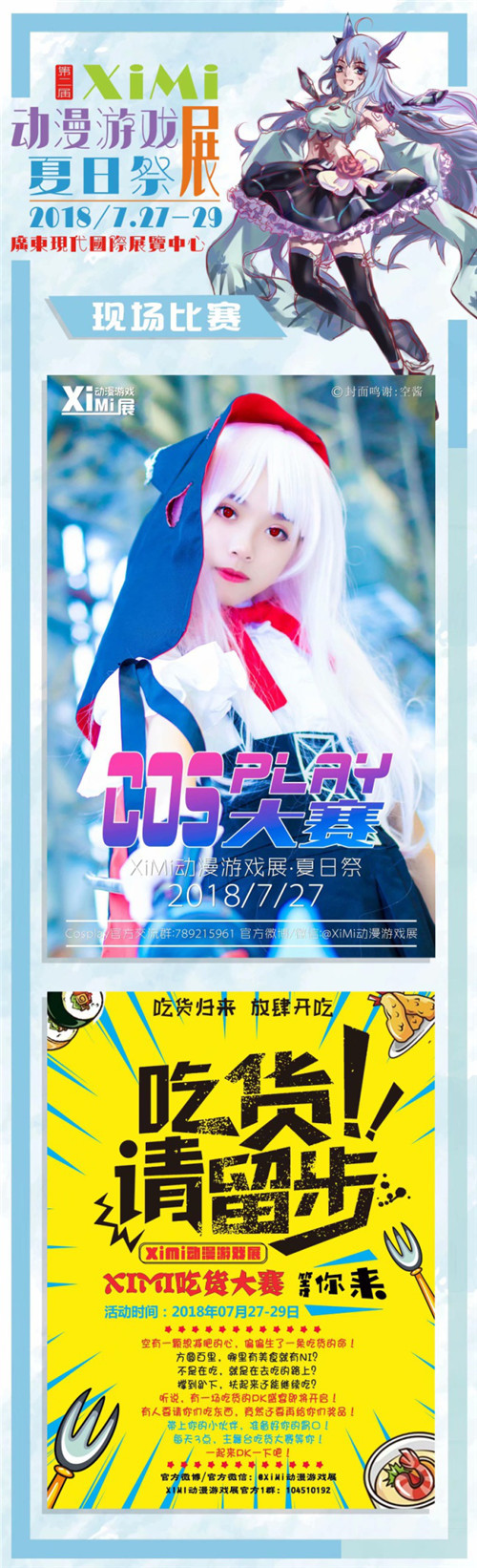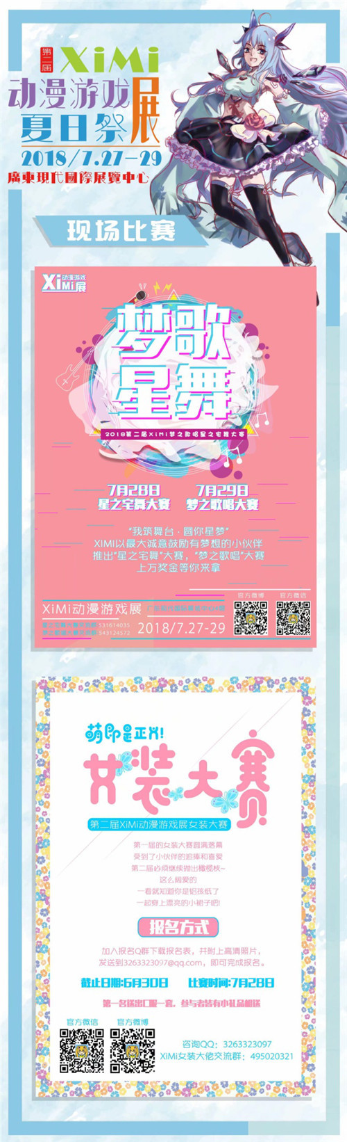 超精彩宅舞劲歌大赛开启!舞台全天无间隙,嘉宾表演互动+星梦大赛,从早一直到闭馆! XiMi动漫游戏展以最真挚的行动支持有梦想的小伙伴,设立COSER,摄影等多项自由行活动,限两百人哦,快来报名吧!